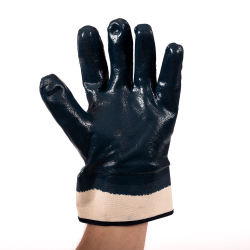 Guante en jersey sanitizado son soporte textil y baño de nitrilo.