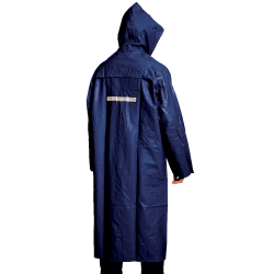 Conjunto de dos piezas (chaqueta con gorro incorporado), Tela anti desgarro de alta resistencia, 100% impermeable, broches a presión, Esclavina para ventilación en espalda. Costuras selladas electrónicamente por alta frecuencia, cinta reflectiva en espalda