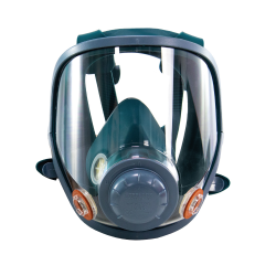 Respirador rostro completo (full face) fabricado en silicona hipoalergenica, visor de policarbonato anti-empañante de amplia vision, arnes de silicona ajustable de 4 puntos y conectores tipo bayoneta para filtros. Producto certificado EN136:1998 CL2 - EU 2016/425 - CE 0082