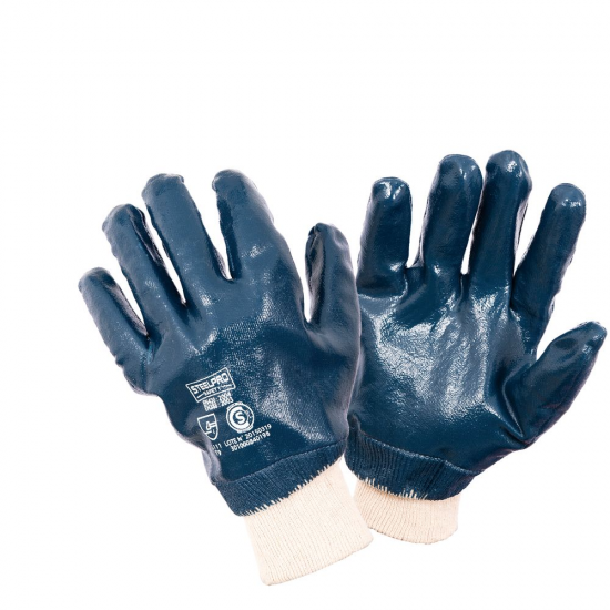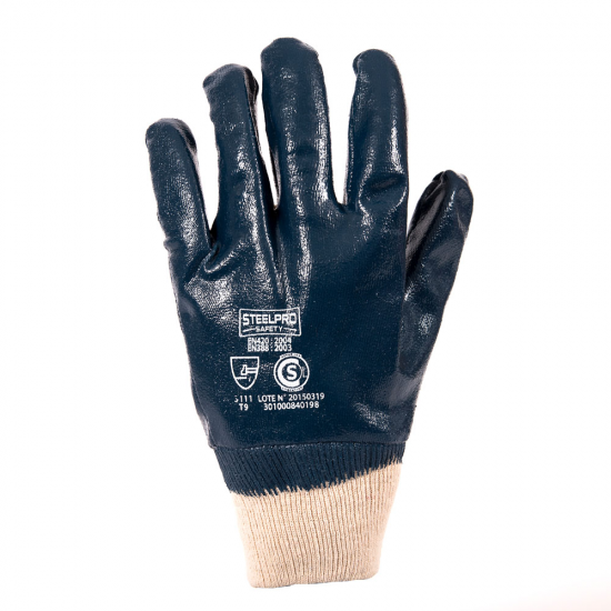 Guante en jersey sanitizado con soporte textil y baño en nitrilo.