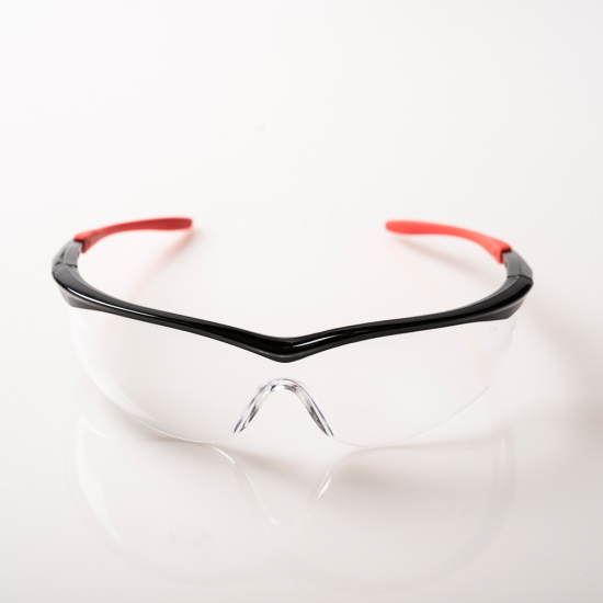 Lente de policarbonato con marco y patillas de Nylon, en los extremos de las patillas insertos de goma hipo alergénica anatómica con un diseño en el cual se destacan el equilibrio correcto entre protección, comodidad y confort.